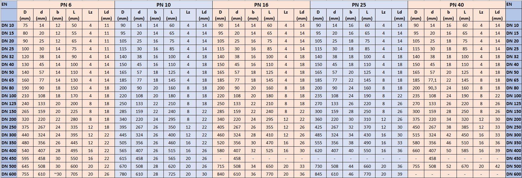 Las bridas están disponibles en diferentes tipos de acero en diferentes diseños y dimensiones. Aquí encontrarás una composición de tamaños populares.
